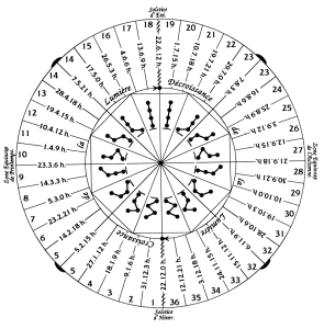 Dans ce schéma, les fées montent de la plus sombre à la plus lumineuses du 22.12 au 21.06, et redescendent dans l’ordre inverse du 22.06 au 21.12.