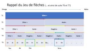 - Vision verticale : vision effective du Jeu de Flèches, qui représente la chute des éléments, dans sa mécanique Alchimique (ou comment l’Esprit agit dans la matière, sa part de lui-même qui est ralentie, comme exilée aux pourtours de la sphère de conscience).